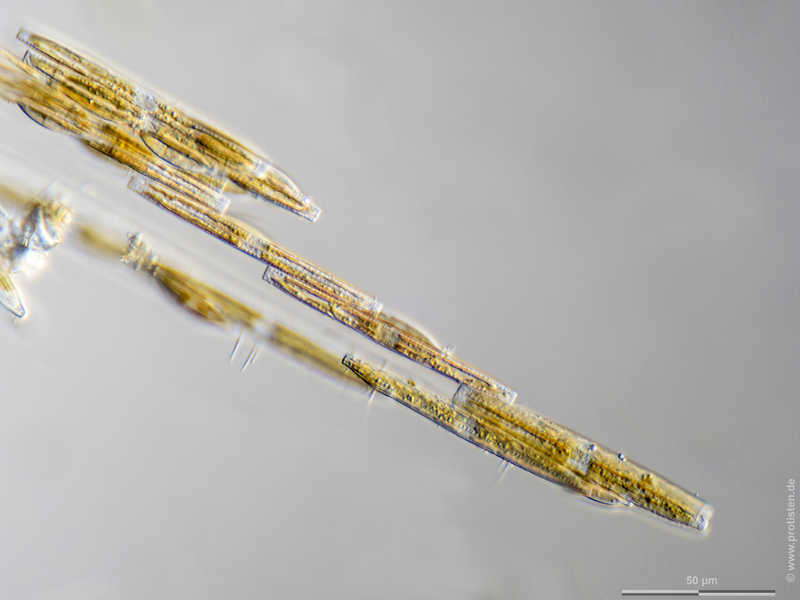 Multiebenen-Abbildung, manuell gestapelt. Der Messbalken markiert eine Länge von 50 µm. Probe aus dem Hiddenseer Bodden. Datum der Aufsammlung: 9/2022. Mikrotechnik: Zeiss Standard, Kamera: Olympus OM-D M5 MKII. Creative Commons License V 3.0 (CC BY-NC-ND).