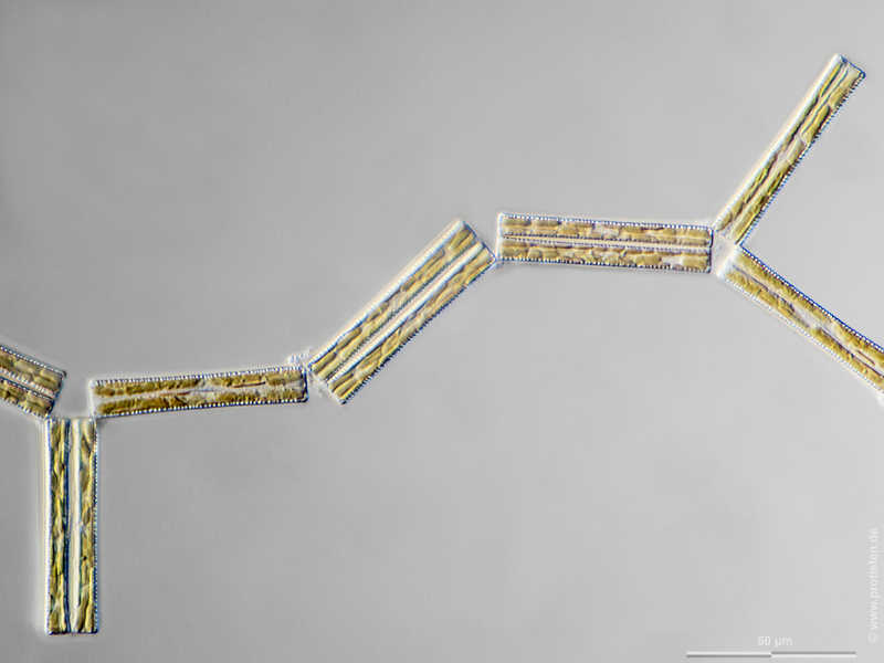 Multiebenen-Abbildung, manuell gestapelt. Der Messbalken markiert eine Länge von 50 µm. Probe aus dem Hiddenseer Bodden. Datum der Aufsammlung: 9/2022. Mikrotechnik: Zeiss Standard, Kamera: Olympus OM-D M5 MKII. Creative Commons License V 3.0 (CC BY-NC-ND).