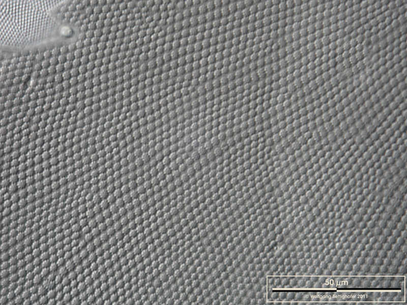 DIC closeup of valve of a living specimen. Scale bar indicates 50 µm. Sample from North Sea near Heligoland (spring diatom bloom). The image was built up using several photomicrographic frames with manual stacking technique. Images were taken using Zeiss Universal with Olympus C7070 CCD camera.Image under Creative Commons License V 3.0 (CC BY-NC-SA).