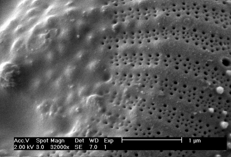 Frustules mounted on a lorica from ciliate Codonella crater gathered in the lake Schierensee near Kiel, Germany5/2004). Use of SEM equipment courtesy of Lab Dr. Karl-Heinz Schäffner, Solingen, Germany.Image under Creative Commons License V 3.0 (CC BY-NC-SA).