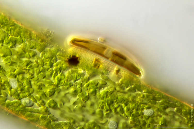 Eunotia arcus auf Cladophora Optischer Querschnitt. Der Messbalken markiert eine Länge von 25 µm.