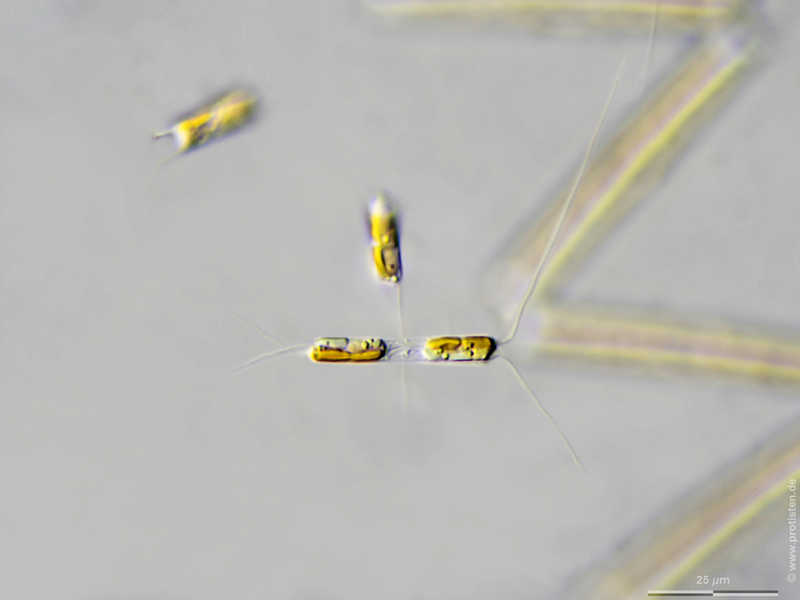This specimens were gathered in the Kieler Förde (German Baltic Sea). The sample contained several single-cell-specimen except this one. Scale bar indicates 25 µm. The image was built up using several photomicrographic frames with manual stacking technique. Images were taken using Zeiss Axioplan with MFT camera Olympus OM-D E-M5 II. Image under Creative Commons License V 3.0 (CC BY-NC-SA).