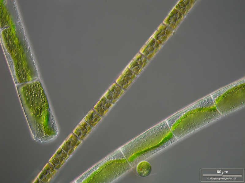 Melosira variansMelosira varians together with Mougeotia and Chlamydomonas. The scale bar indicates 50 µm.