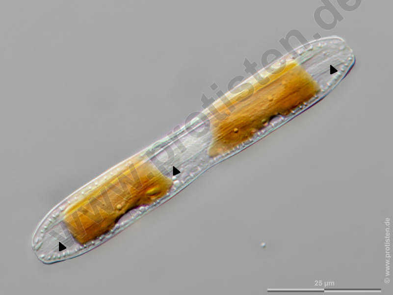 Girdle band (arrowhead). Scale bar indicates 25 µm. The specimen was gathered in the Kieler Förde (Baltic Sea). Sampling date 1/2022. The image was built up using several photomicrographic frames with manual stacking technique. Images were taken using Zeiss Axioplan with Olympus OM-D M5 MKII. Image under Creative Commons License V 3.0 (CC BY-NC-SA).