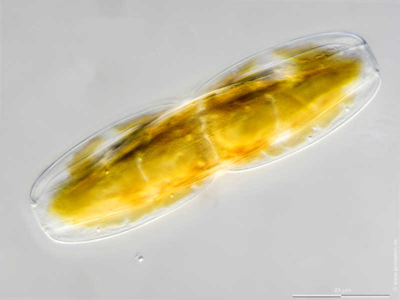 Der Messbalken markiert eine Länge von 25 µm. Probe aus einem Bodden-Vorfluter auf Hiddensee südlich von Kloster. Datum der Aufsammlung: 9/2022. Mikrotechnik: Zeiss Universal, Kamera: Olympus OM-D M5 MKII. Creative Commons License V 3.0 (CC BY-NC-ND).