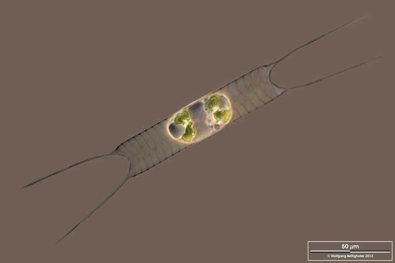 Die Probe wurde in den Feuchtgebieten des Nationalpark Unteres Odertal (100 km nordöstlich von Berlin) gesammelt. Mikrotechnik: Zeiss Universal, Kamera: Olympus C7070.