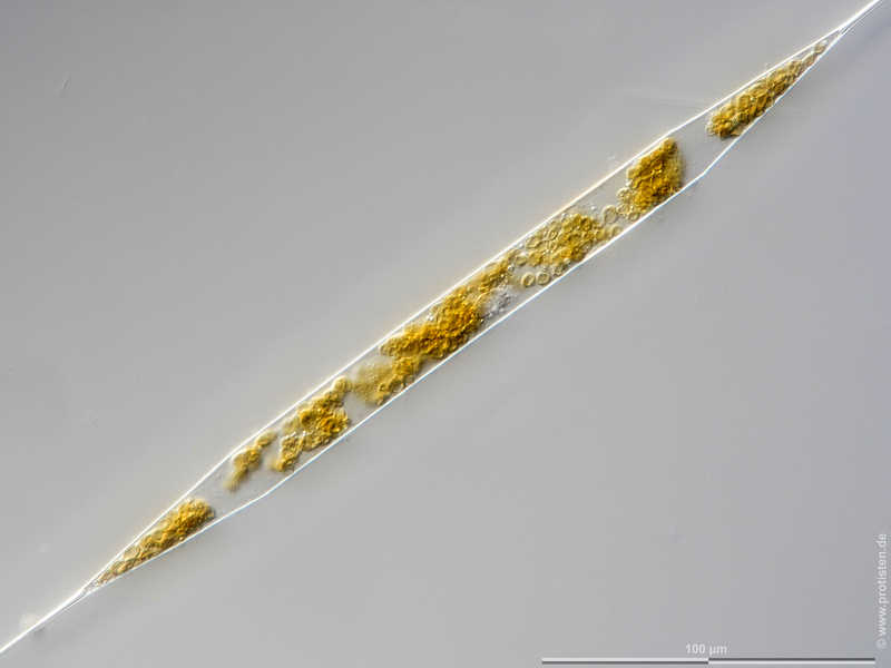 Scale bar indicates 100 µm. The specimen was gathered in the Kieler Förde (Baltic Sea). Sampling date 2/2022. The image was built up using several photomicrographic frames with manual stacking technique. Images were taken using Zeiss Axioplan with Olympus OM-D M5 MKII. Image under Creative Commons License V 3.0 (CC BY-NC-SA).