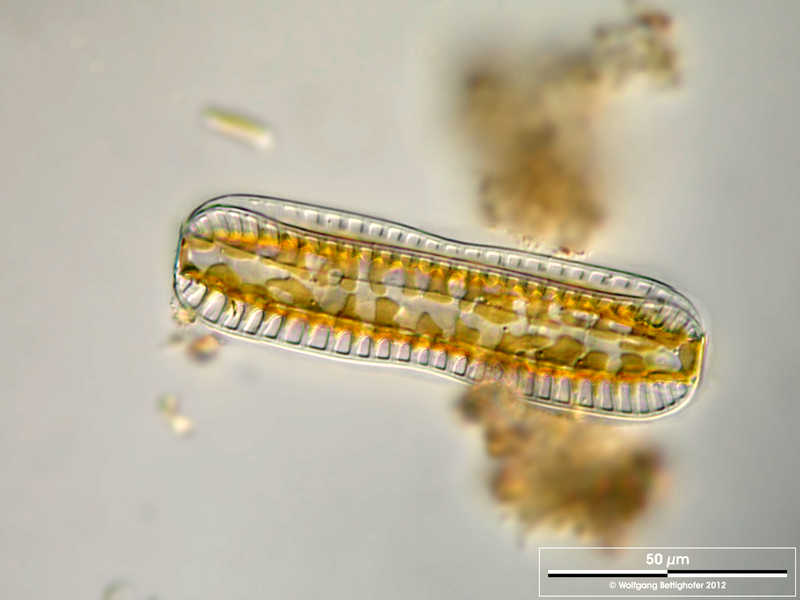 Cingular view displayin 3 of the 4 raphe keels. Scale bar indicates 50 µm. Sample from a wetland at the Pillersee (Tyrol, Austria). The image was built up using several photomicrographic frames with manual stacking technique. Images were taken using Zeiss Universal with Olympus C7070 CCD camera. Image under Creative Commons License V 3.0 (CC BY-NC-SA).