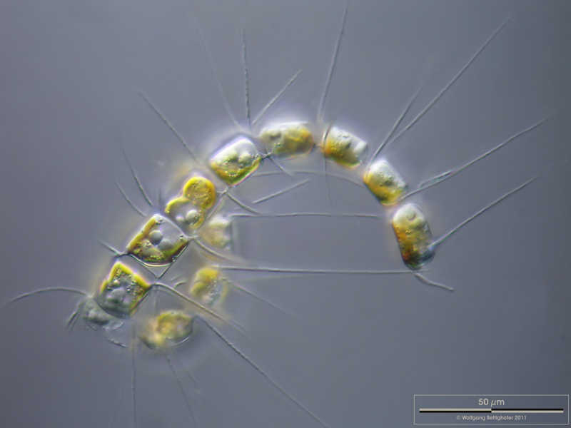 Probe aus der Nordsee vor Helgoland in der Zeit der Frühjahrsblüte. Mikrotechnik: Zeiss Universal, Kamera: Olympus C7070.