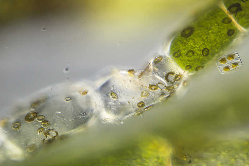 Cocconeis spec. living on the green alga Cladophora. Sample from the North see near isle of Nordstrand. Images were taken using Zeiss Universal with Canon EOS 600D. Image under Creative Commons License V 3.0 (CC BY-NC-SA).